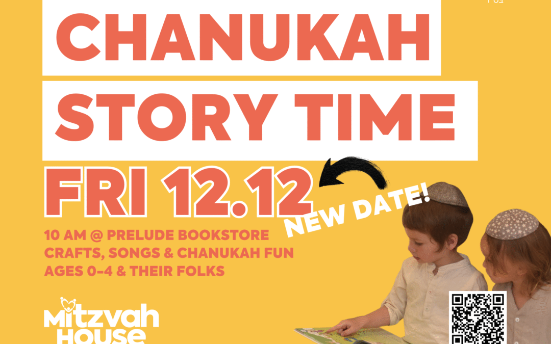 December 5 @10 AM Come sing Chanukah songs, do a craft taste some yummy Chanukah treats at this fun story time in the new Prelude Bookstore